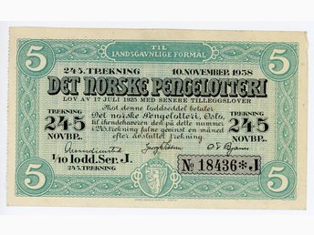 Norsk Pengelotteri Sedel från 1938