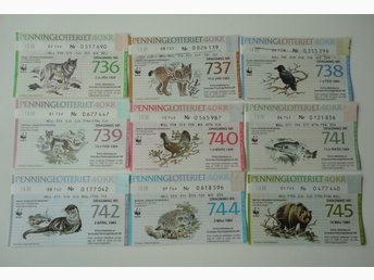 9 st Gamla penninglotter med motiv av landskapsdjur.