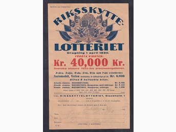 Reklam / Beställningssedel Riksskyttelotteriet 1936