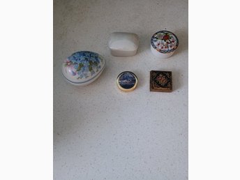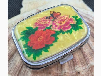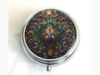 Mycket fin pillerask med påfågelmotiv med 3 st fack.