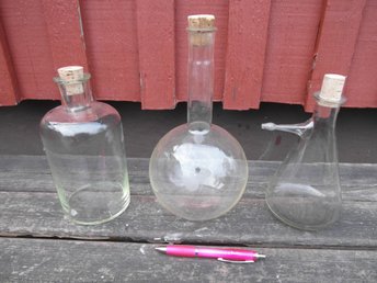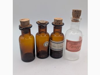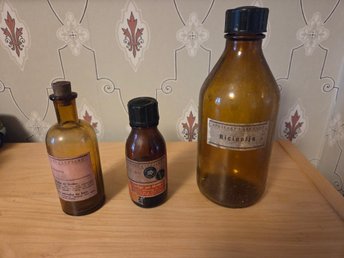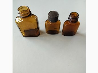 Tre små Antika Bruna Apoteksflaskor, Glasflaskor