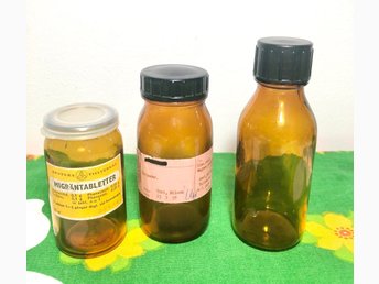3 st Vintage Apoteksflaskor i Brunt Glas ( Enköping) antika flaskor från apotek