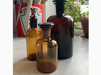 Trevliga medicinflaskor/ apoteksflaskor i brunt glas