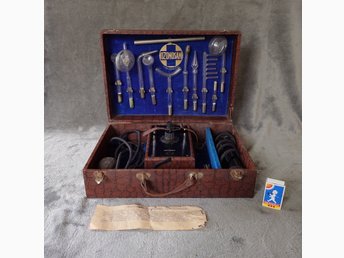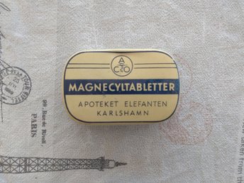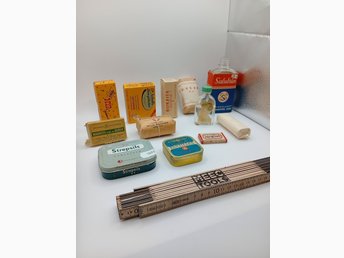 Turistförbandslåda Astra, nr. 508-00, äldre apotek, innehåll, bl.a Laxante Salud
