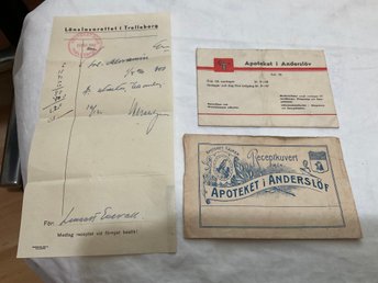 2 st Gamla Apotekskuvert och Recept från Anderslövs apotek