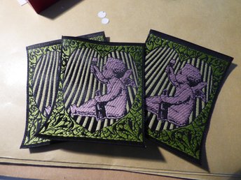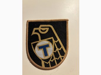 Militärt broderat tygmärke med ett motiv av en örn på mörkgrön bakgrund.
