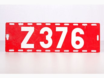 REGISTRERINGSSKYLT, 50-60tal, ”Z376”, ”Polisen Östersund”, röd, vintage