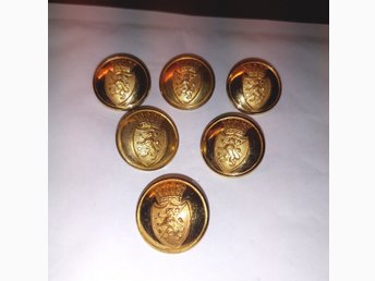 Militära förgyllda knappar 6st 2,5cm I diameter sporrong Stockholm.
