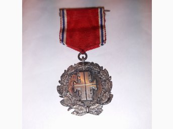 Förtjänstmedalj med rött band och vita och blåa ränder stämplad med "830"F.B