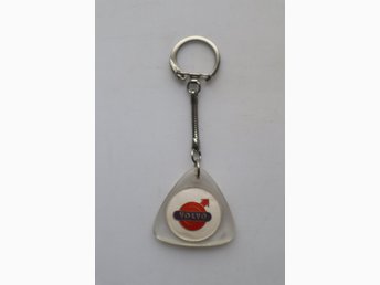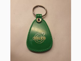 Volvo äldre nyckelring I grön plast med äldre Volvo emblem tryckt på I guldfärg.