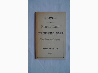 Studebaker Bros. Manufacturing Company Prislista 1876 eftertryck