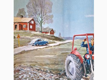 RETRO äldre charmig pappersbonad SAAB ANA, SAAB 93 , FERGUSON traktor kuriosa