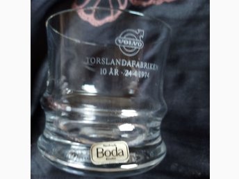 VOLVO Whiskeyglas Kosta jubileumsglas 1974 Torslandafabriken 10 år