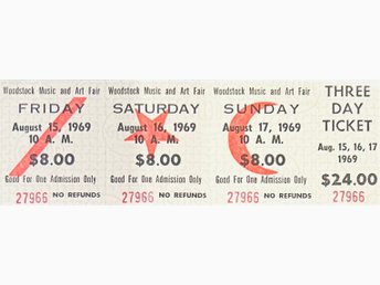 Original Woodstock festivalbiljett 1969 i Mint Condition - värderad av Sothebys