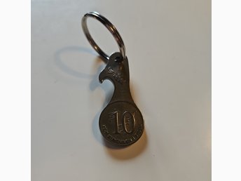 1: Äldre ovanlig? nyckelring ”Volvos värde varar” ses när man snurrar på plattan