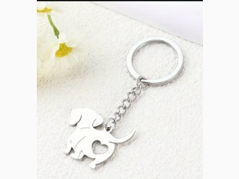 Ny fin nyckelring. Silverfärgad. Med söt hund