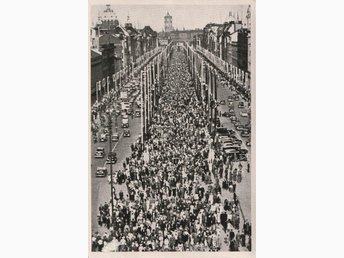 OS 1936 - BERLIN / Festgatan " Unter den Linden " med flaggparad