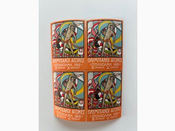 karta med4 reklammärken på grekiska från Olympiaden 1912 i Stockholm