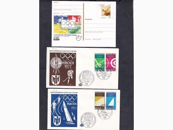 3 tyska postala objekt med OS-anknytning, 2 FDC München -72 o en Postkarte -96
