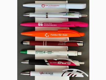 Reklam/kulspetspenna – 7 st. + 1 st. stiftpenna
