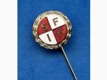 Pin / nål med "SFM" på mössan.