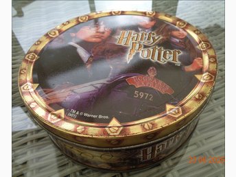 Plåtburk. Rund burk, motiv av äldre bilar, flygplan. Ny