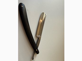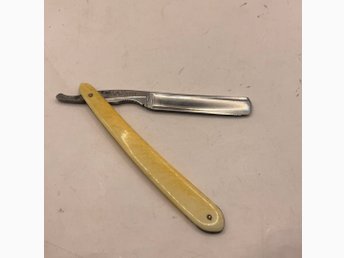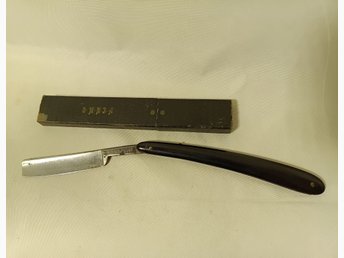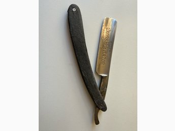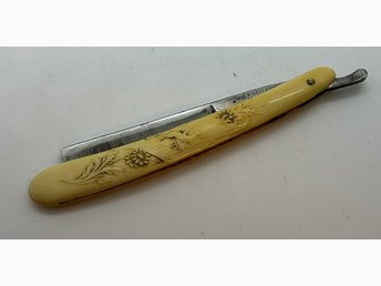 Vintage Engelsk Rakkniv märkt Warranted Sheffield och Arbolito Edelweiss-fodral