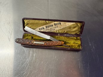 C.V Heljestrand Eskilstuna antik rakkniv med fodral