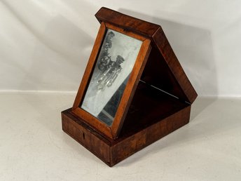 ANTIK RAKSPEGEL MED LÅDA I TRÄ / BJÖRK 1800-TAL