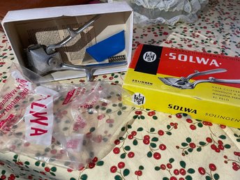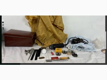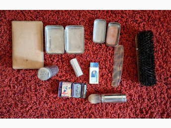 Vintage frisörutrustning med Aesculap klippmaskin och tillbehör
