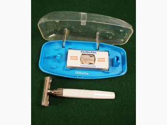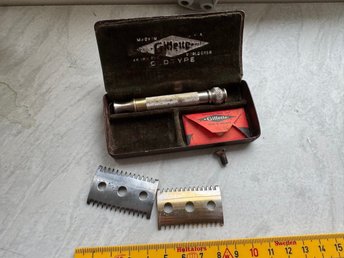 Vintage Gillette Rakhyvel, med rakblad och original fodral i plast