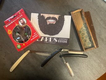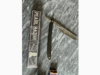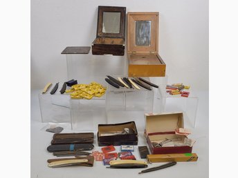 Parti äldre rakningsrelaterade föremål - Rakning - Rakblad - Rakspegel