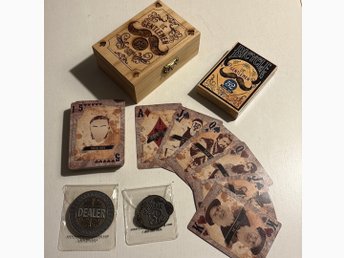 Spelkort märkta Göteborg i skrin med träbotten komplett med jokrar