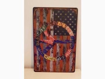 Dekorativ metallskylt – USA-flagga med peace-symbol