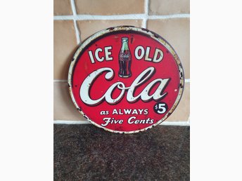 Rund plåtskylt. Cola.