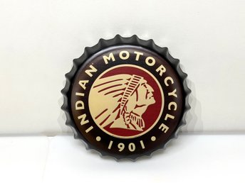 Indian Motorcycle 1901 - plåtskylt - beer cap - dekorativ - 33cm - NY