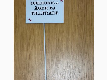 Serholt Sweden, skylt med myror och texten ”Obehöriga äger ej tillträde”