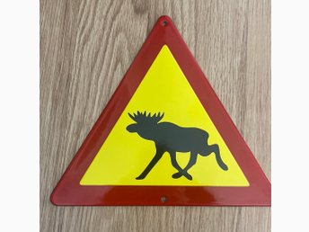 Emaljskylt (varningsskylt) ”Älg” strl. 24x24 cm