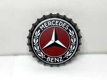 Mercedes Benz - plåtskylt - beer cap - dekorativ - 33cm - NY