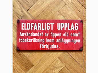 Emaljskylt | ELDFARLIGT UPPLAG | 45x21 cm | Industri / Fabrik