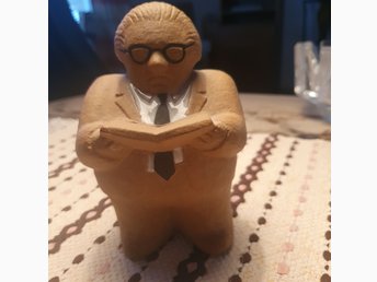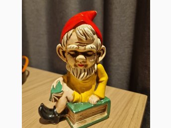 Antik sparbössa i keramik tomte med en bok. Tillverkad i Japan
