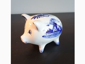 Vintage Delftblå handmålad spargris tillverkad i Holland