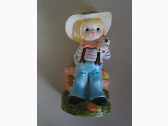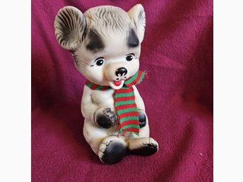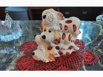 RETRO * FIN JULKLAPP * JÄTTESÖT 20 cm hög Keramisk sparbössa med roliga hundar !