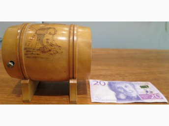 Souvenir-sparbössa från Öland, i trä, ca 60-tal, säljes