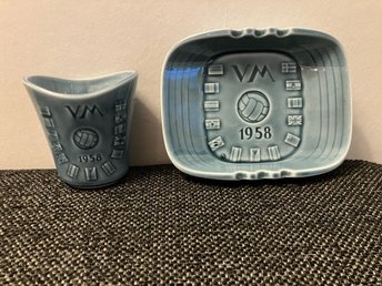 FOTBOLLS VM 1958. CIGGARETT HÅLLARE & ASKKOPP, SET FRÅN RÖRSTRAND