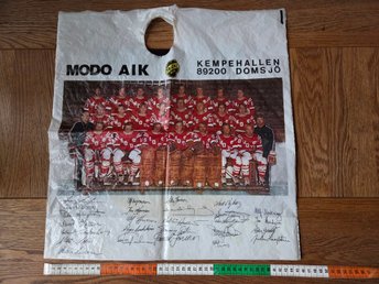 Vintage Påse MoDo AIK med Tryckta Autografer, Kempehallen, Plastpåse Hemköp