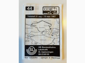 Busstidtabell 1987, SL (AB Storstockholms Lokaltrafik) Linje 44, tidtabell