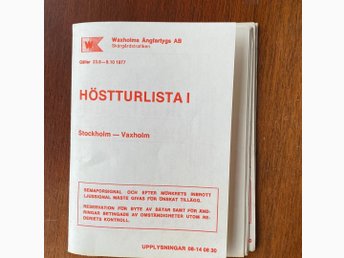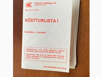 Waxholmsbolagets Höstturlista II från 10/10-18/12 1977