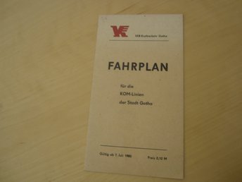 Tidtabell DDR / Fahrplan VEB Kraftverkehr Gotha 1980 Buss / Öst Tyskland