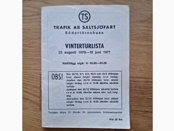 Trafik AB Saltsjöfart Södertörnsbuss Vinterturlista 1970-1971